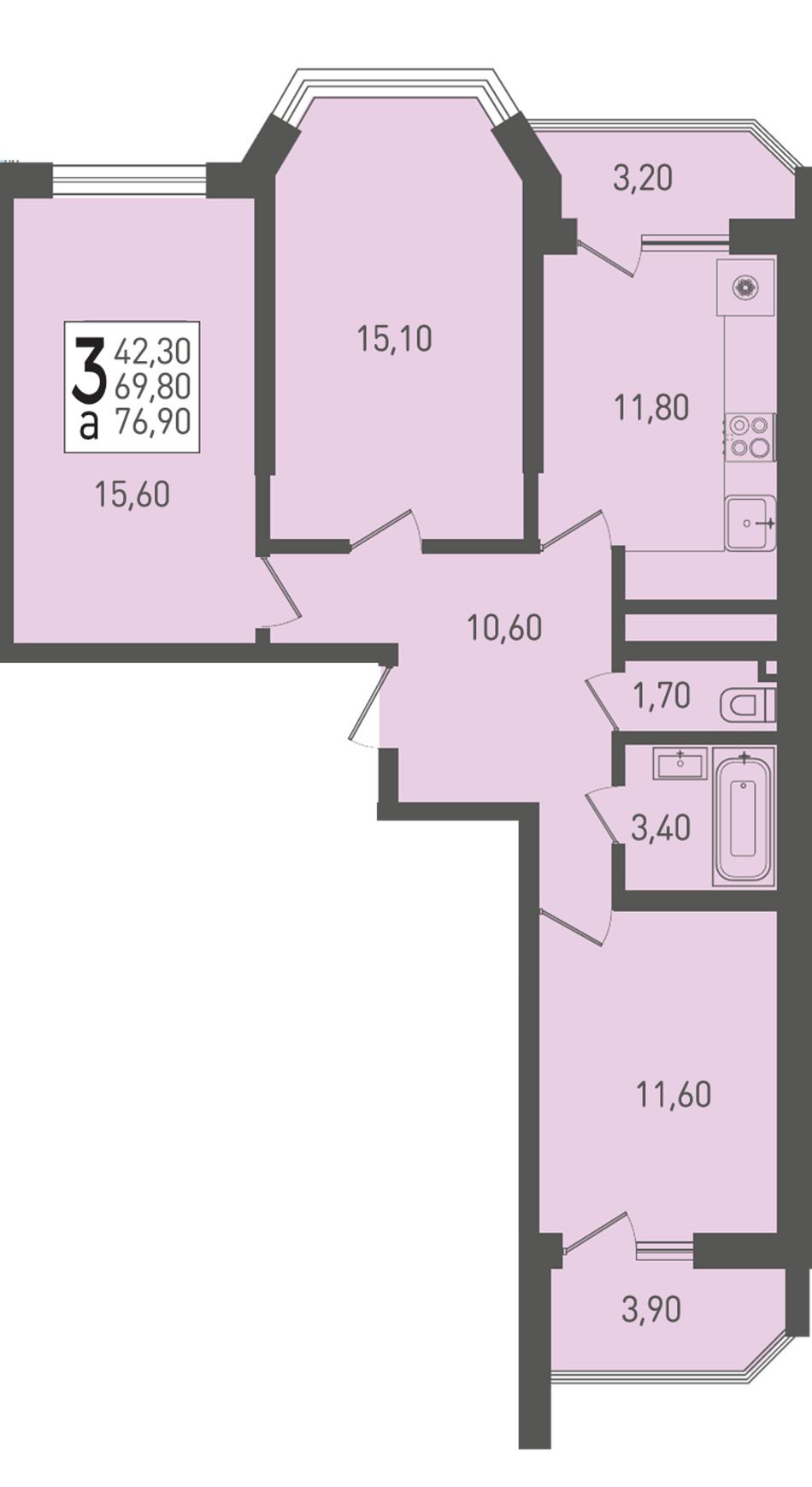 | 3-комн. | 91 м² | 9,7 млн ₽ |