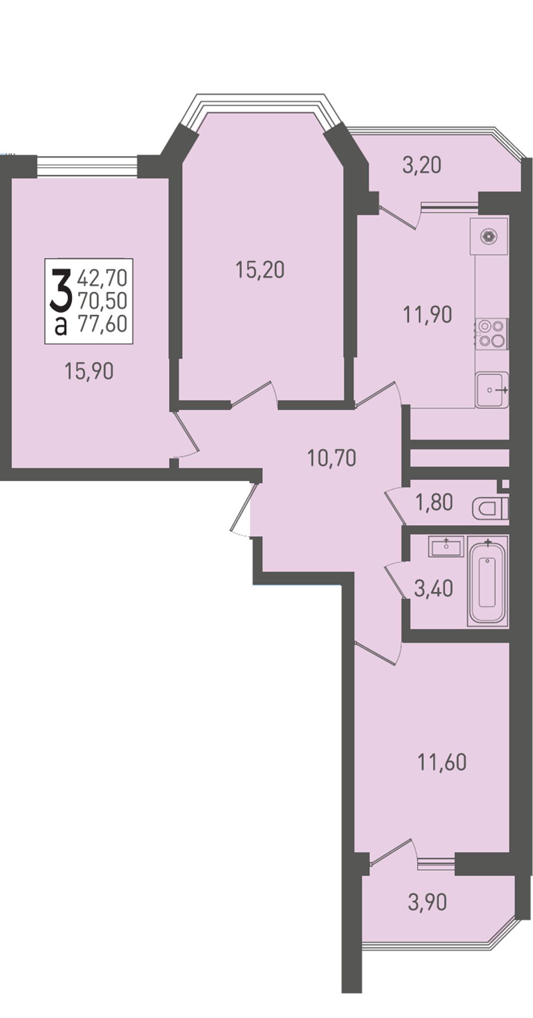 3-комнатная — 77,6 м² 14/22 эт. в Огурцы