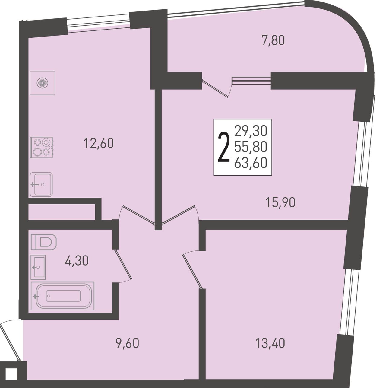 Общая площадь63,6 м²