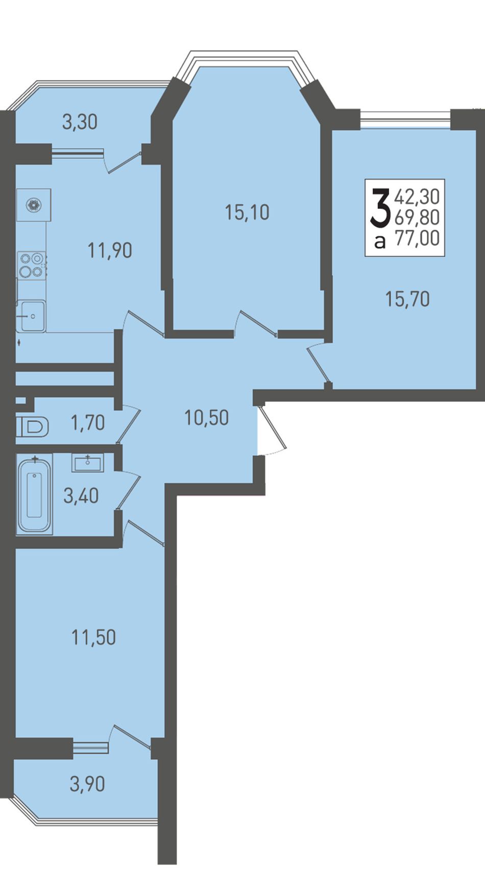 | 3-комн. | 91 м² | 9,7 млн ₽ |