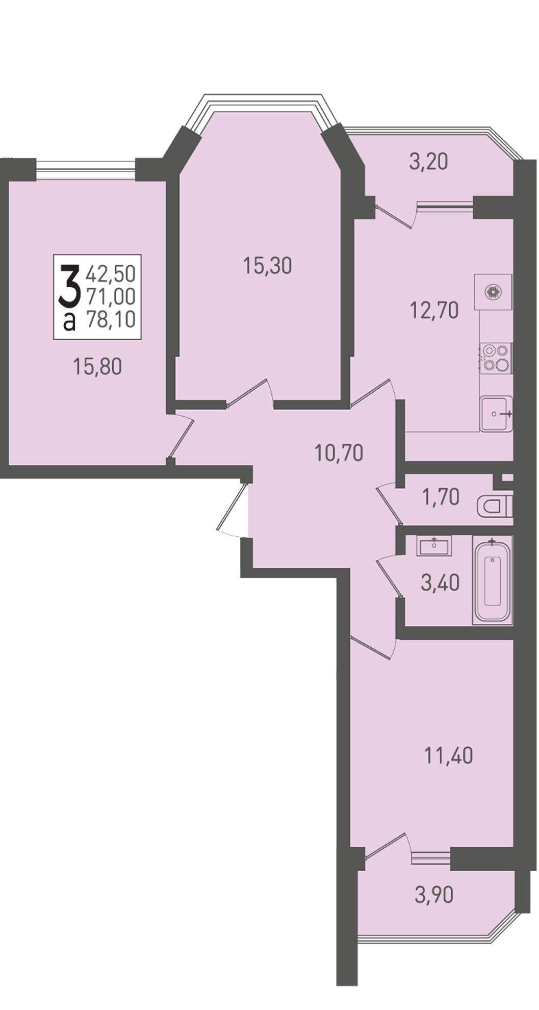 3-комнатная — 78,1 м² 2/22 эт. в Огурцы