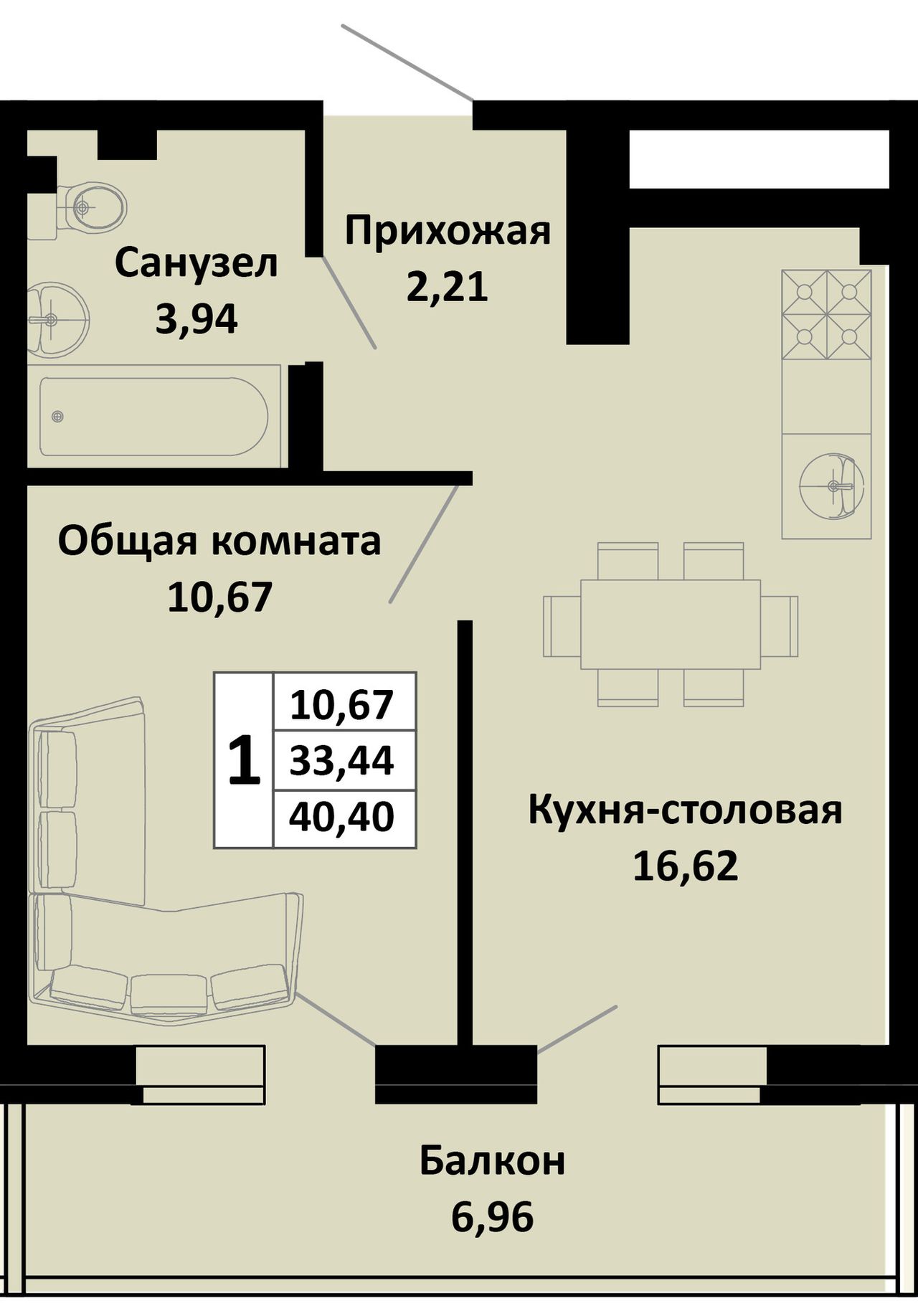 | 1-комн. | 38 - 47 м² | 3,9 - 4,6 млн ₽ |