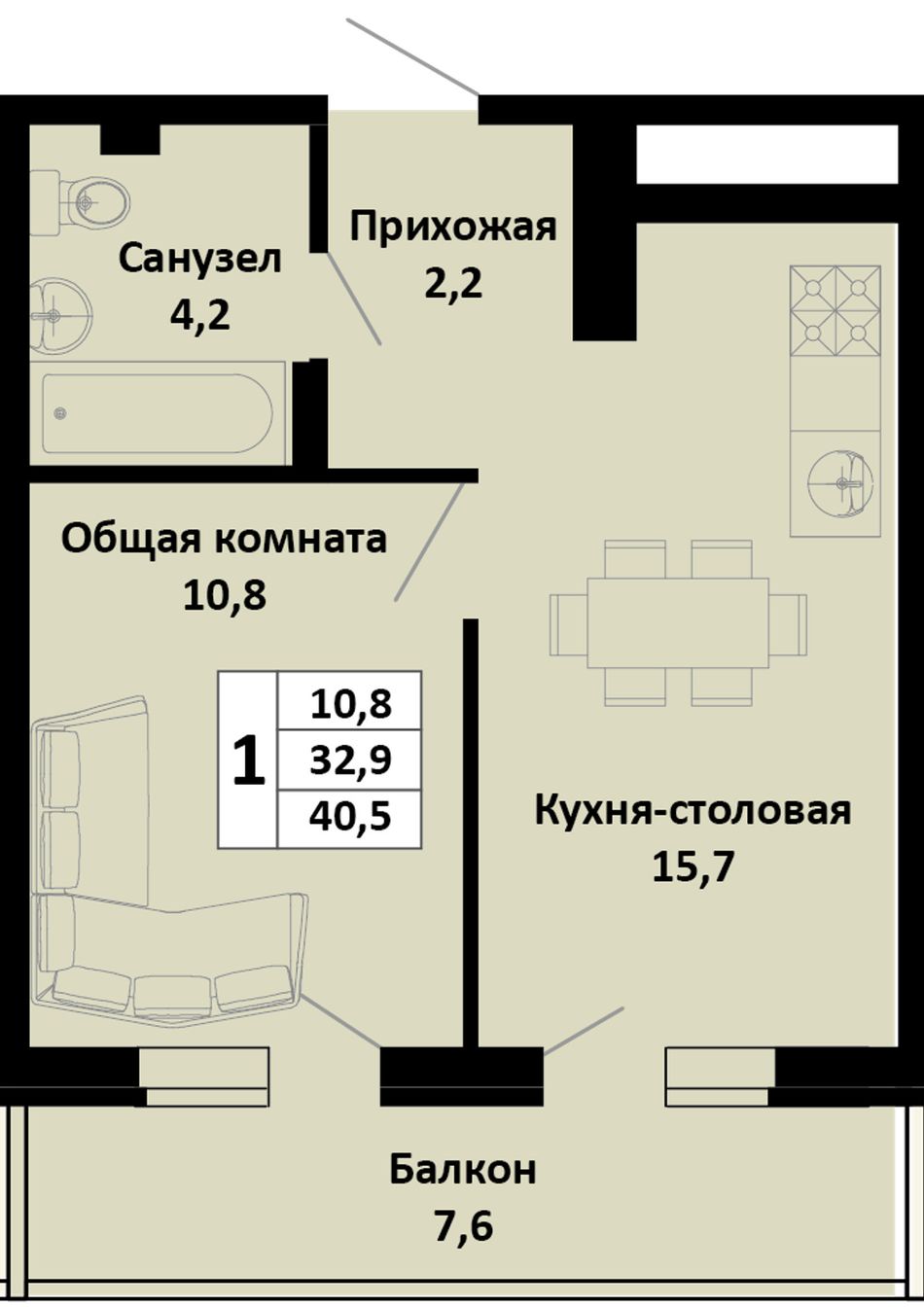 Общая площадь40,5 м²