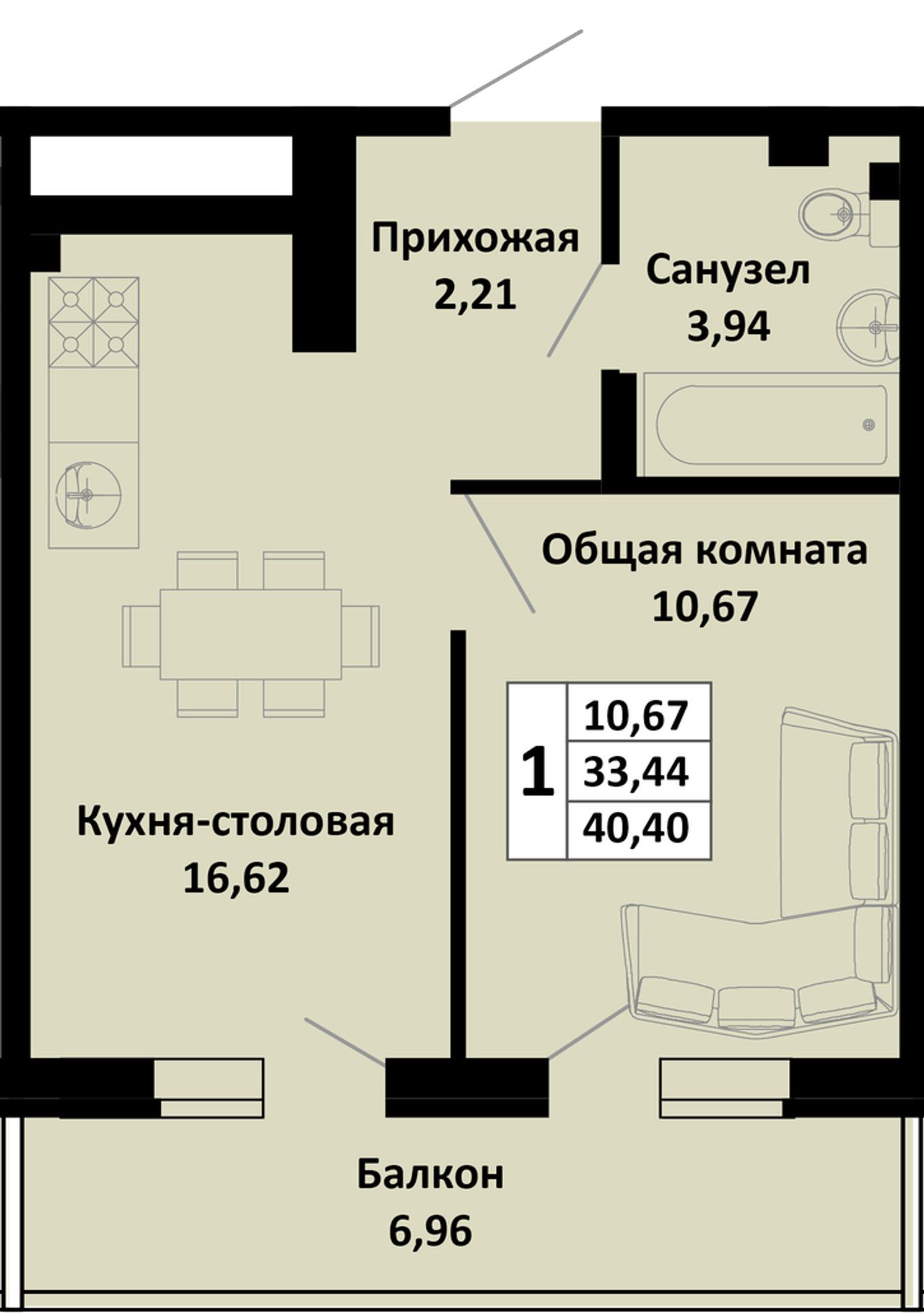 | 1-комн. | 38 - 47 м² | 3,9 - 4,6 млн ₽ |