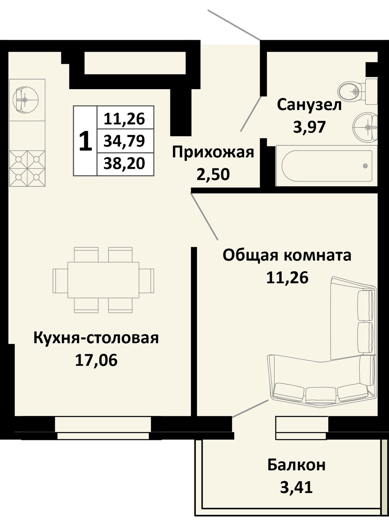 | Студия | 26 - 42 м² | 3,4 - 7 млн ₽ |