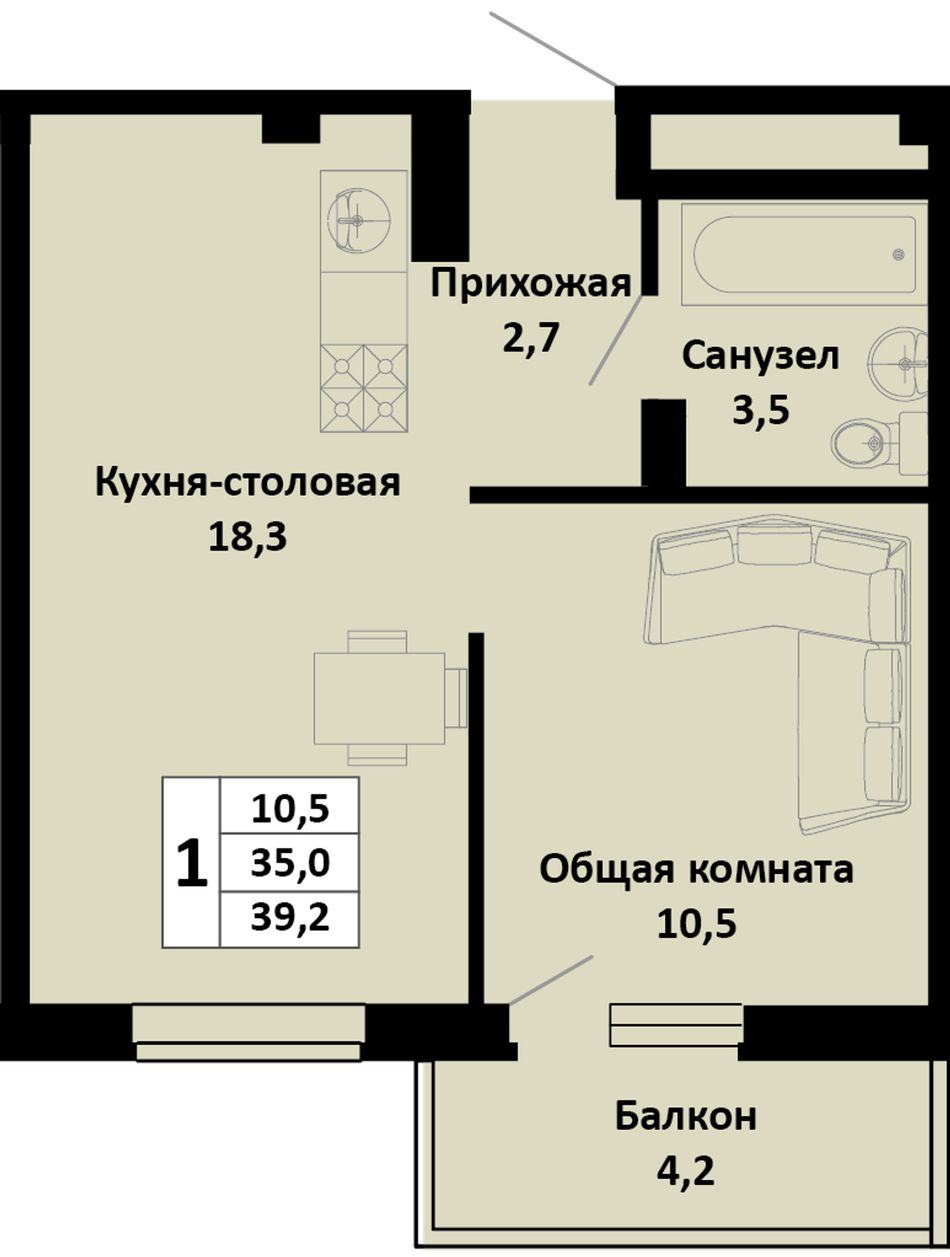 | 1-комн. | 37 - 47 м² | 3,9 - 5,1 млн ₽ |