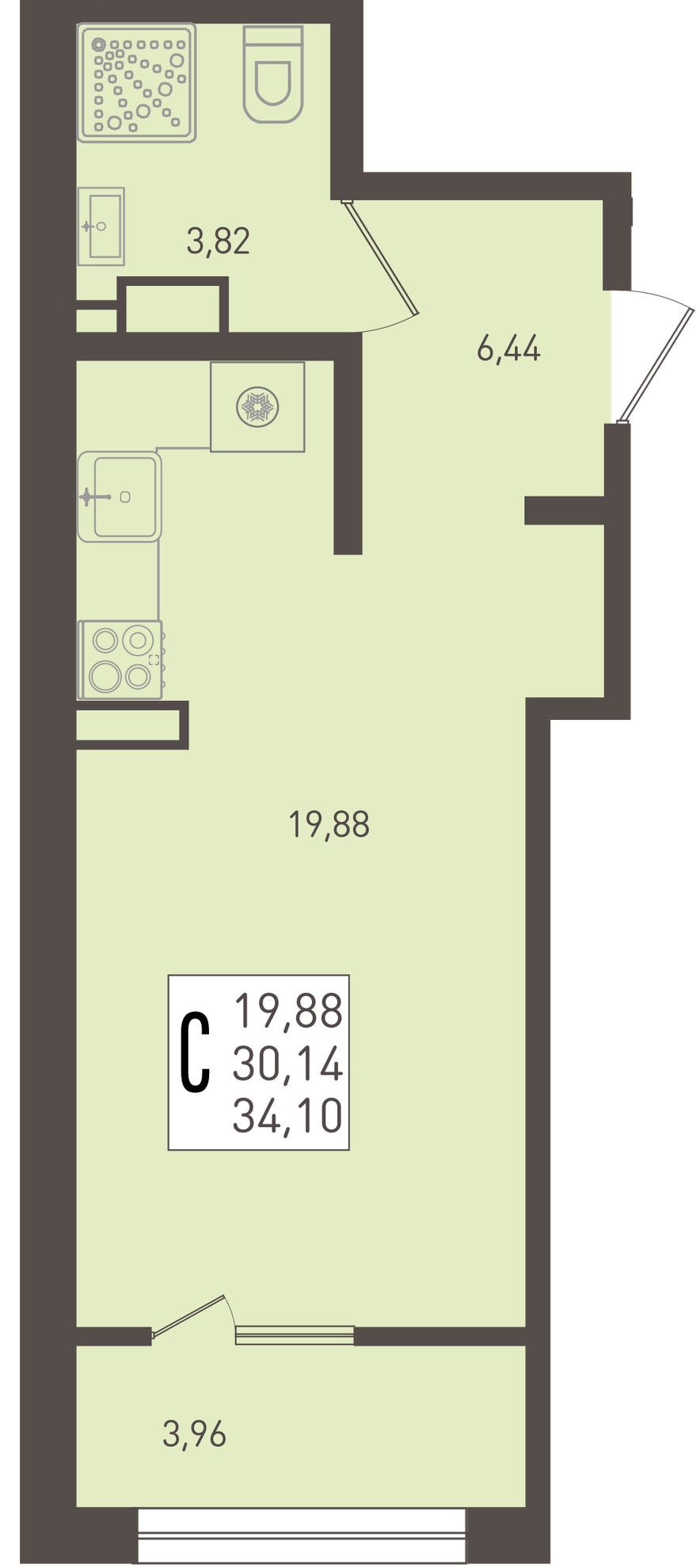 Общая площадь34,1 м²