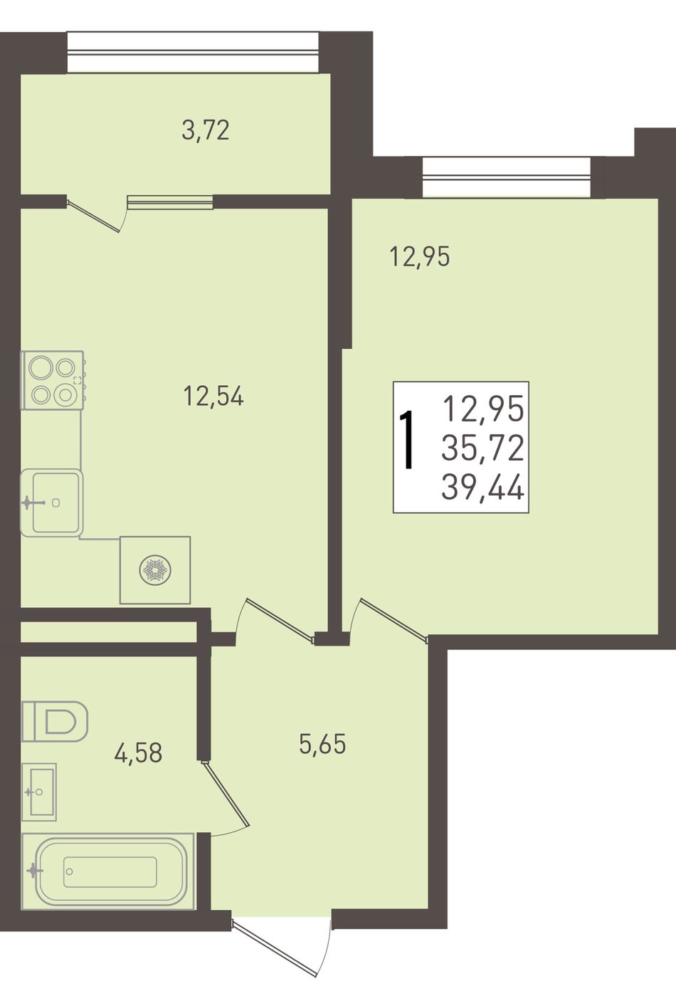 1-комнатная — 39,44 м² 4/9 эт. в ЮГГЕ