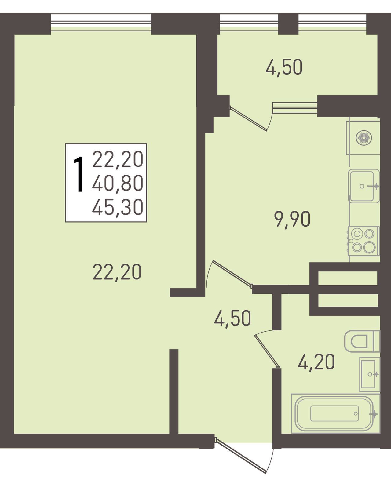 1-комнатная — 45,3 м² 7/8 эт. в ЮГГЕ