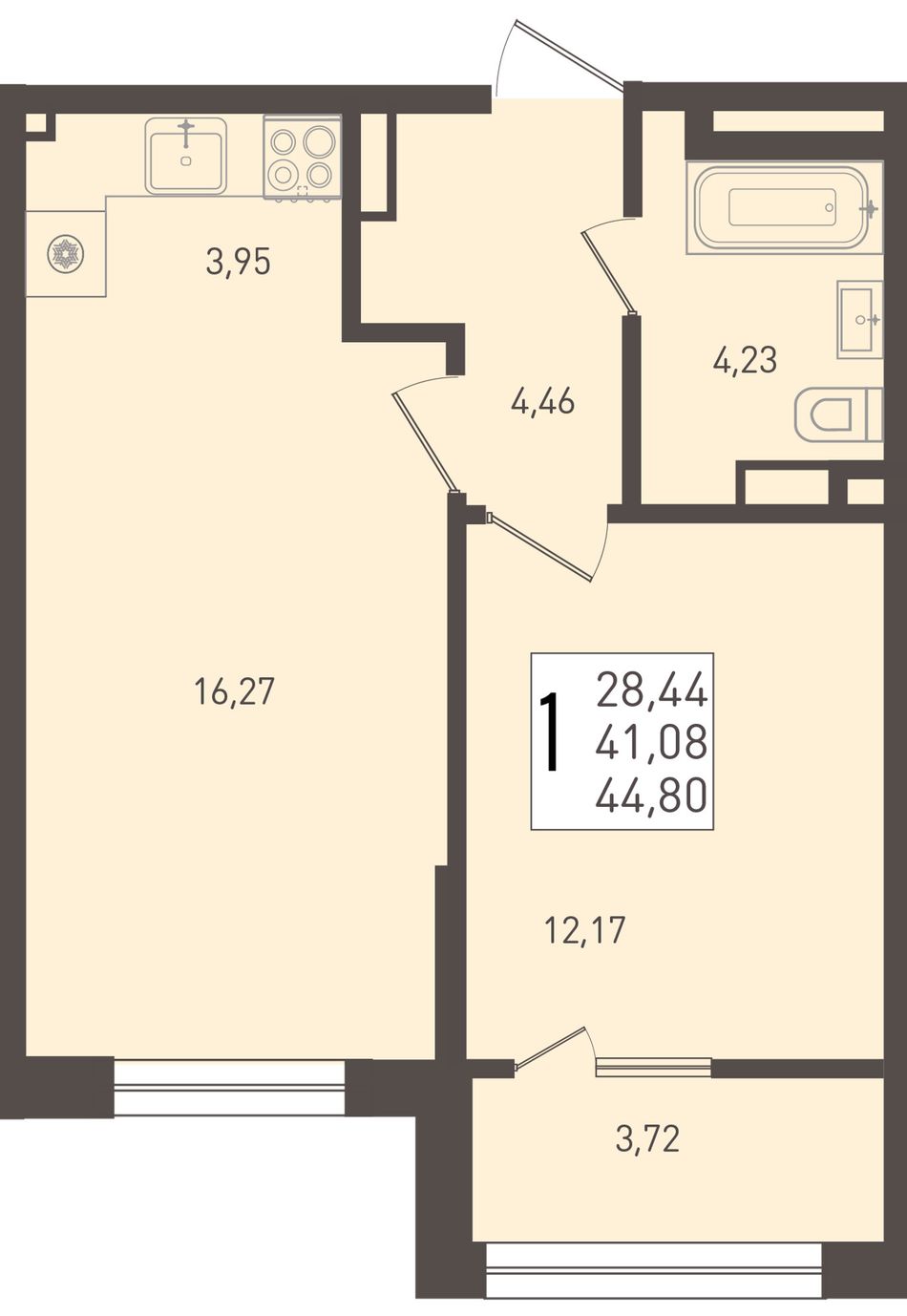 1-комнатная — 44,8 м² 3/9 эт. в ЮГГЕ