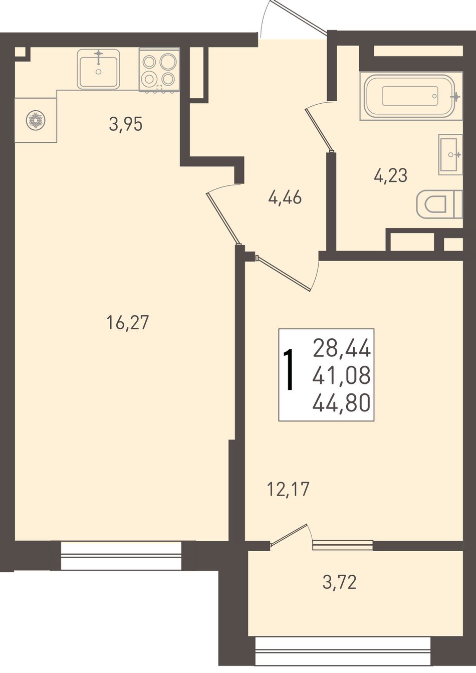 1-комнатная — 44,8 м² 7/9 эт. в ЮГГЕ