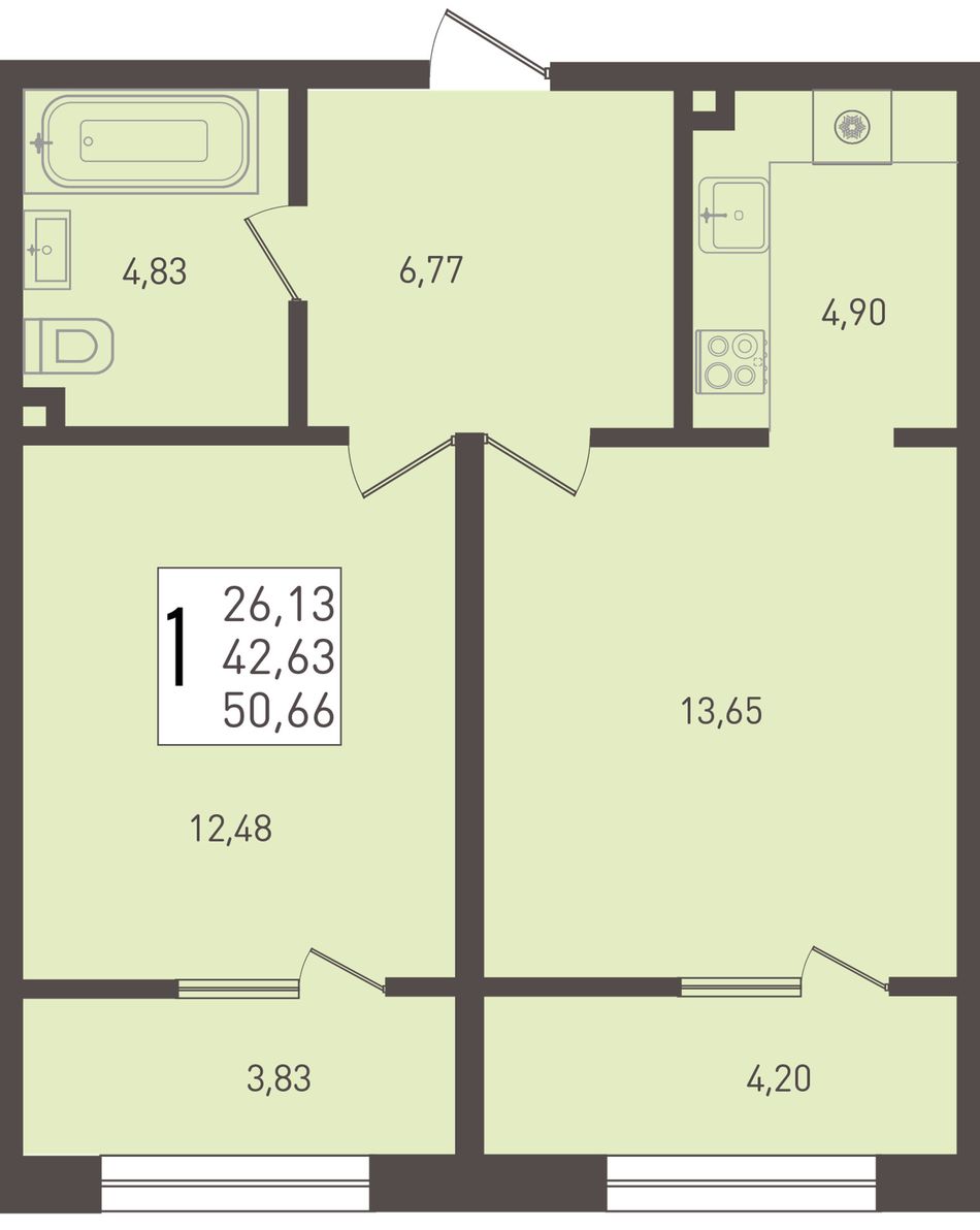 Общая площадь50,66 м²