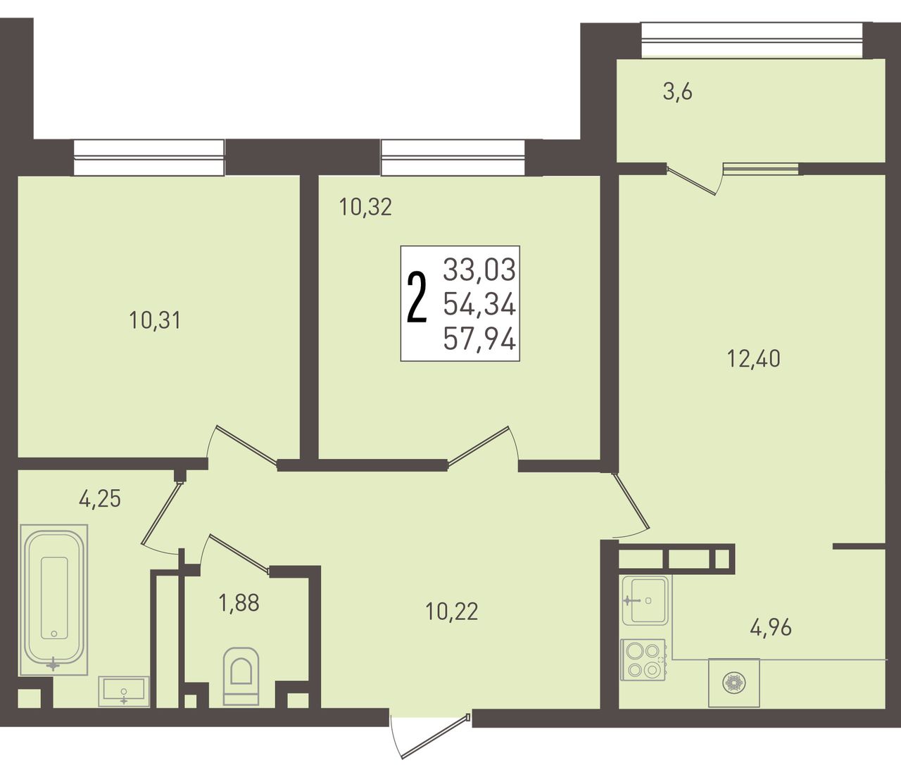 2-комнатная — 57,94 м² 6/9 эт. в ЮГГЕ