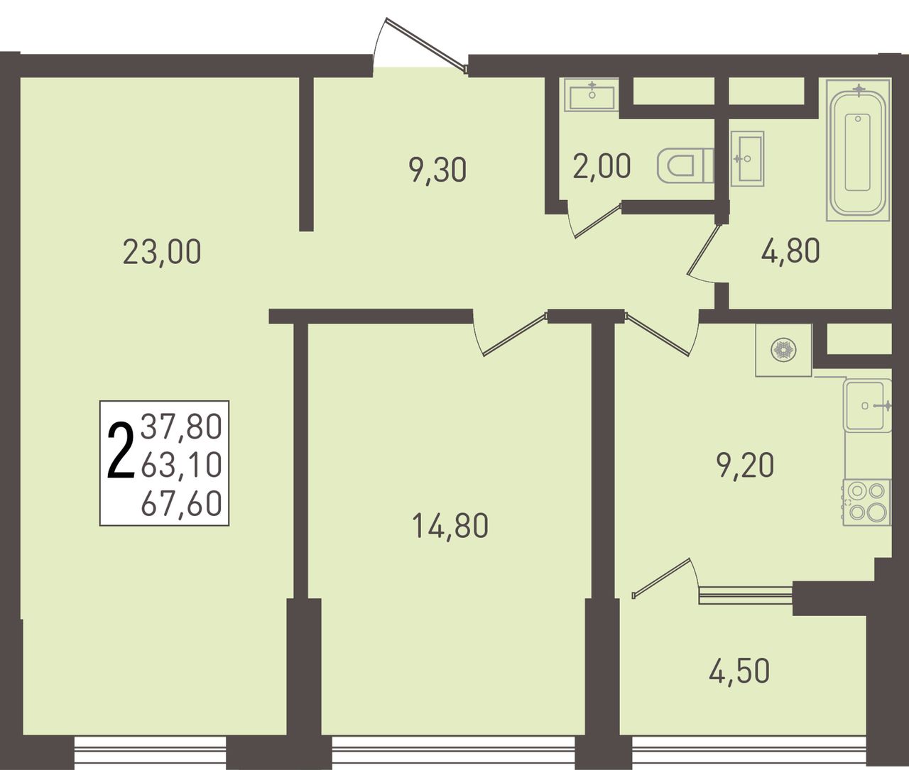 Общая площадь67,6 м²