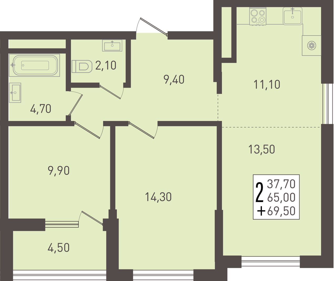 Общая площадь69,5 м²