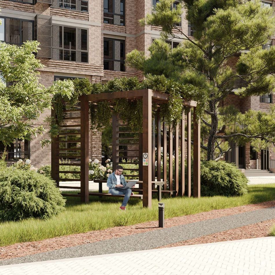 Одним из отличительных преимуществ нового ЖК является комплексное благоустройство – на территории «Югге» будет детский сад, несколько спортивных и детских площадок, прогулочные зоны, места для отдыха, велодорожки. Для удобства жильцов предусмотрены места для хранения велосипедов.