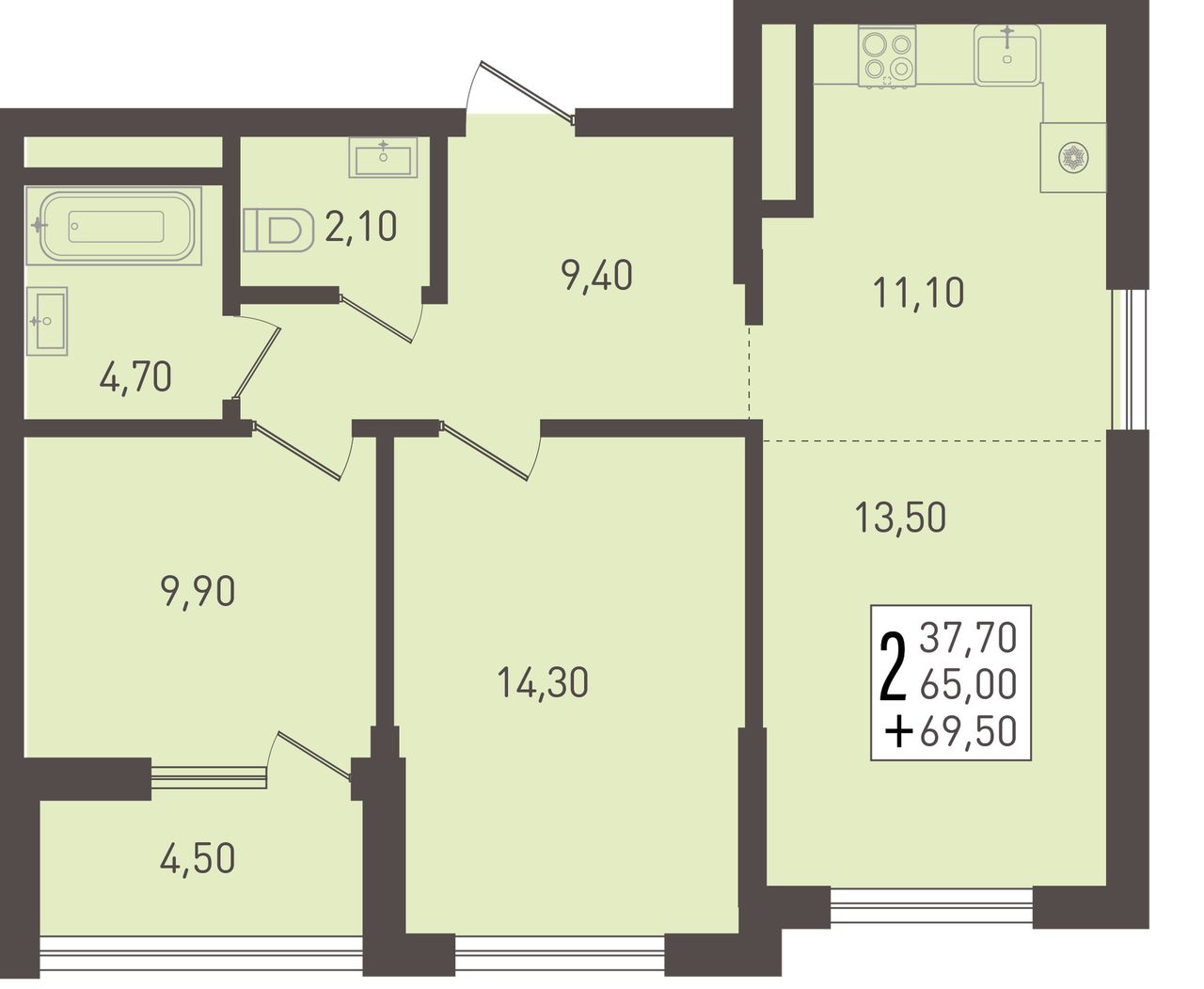 Общая площадь69,5 м²