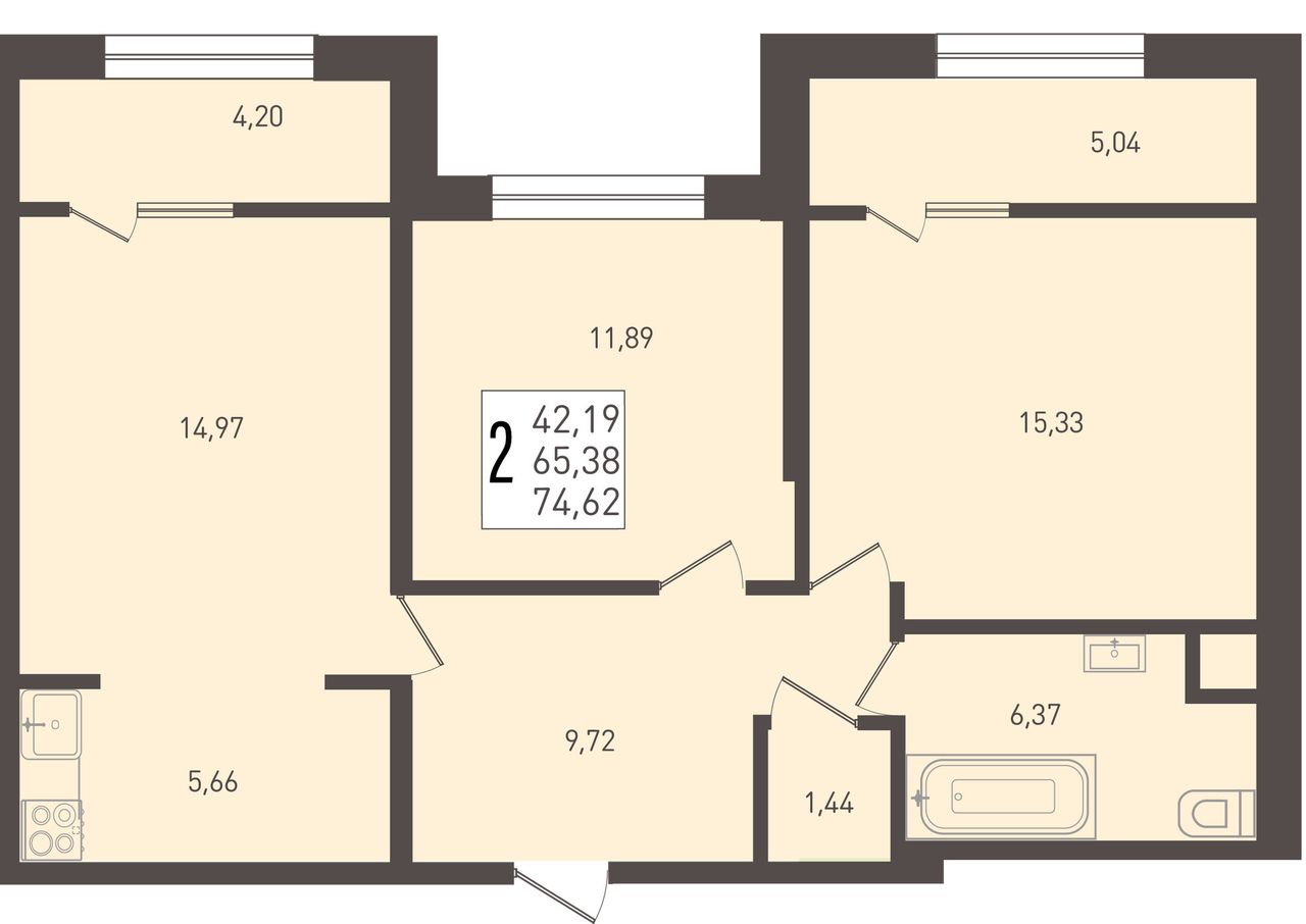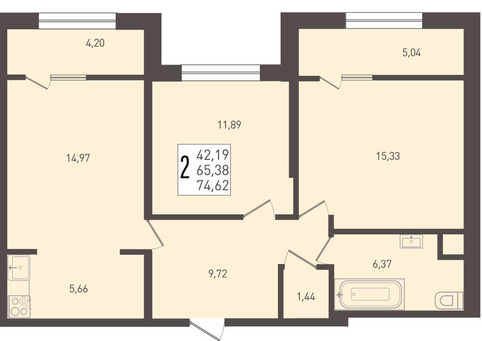 Общая площадь74,62 м²
