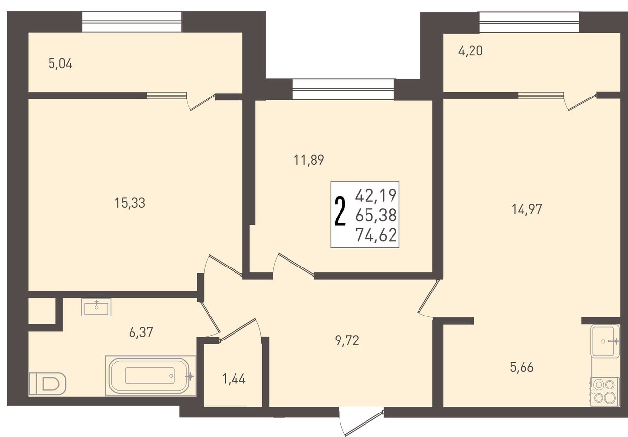 2-комнатная — 74,62 м² 1/9 эт. в ЮГГЕ