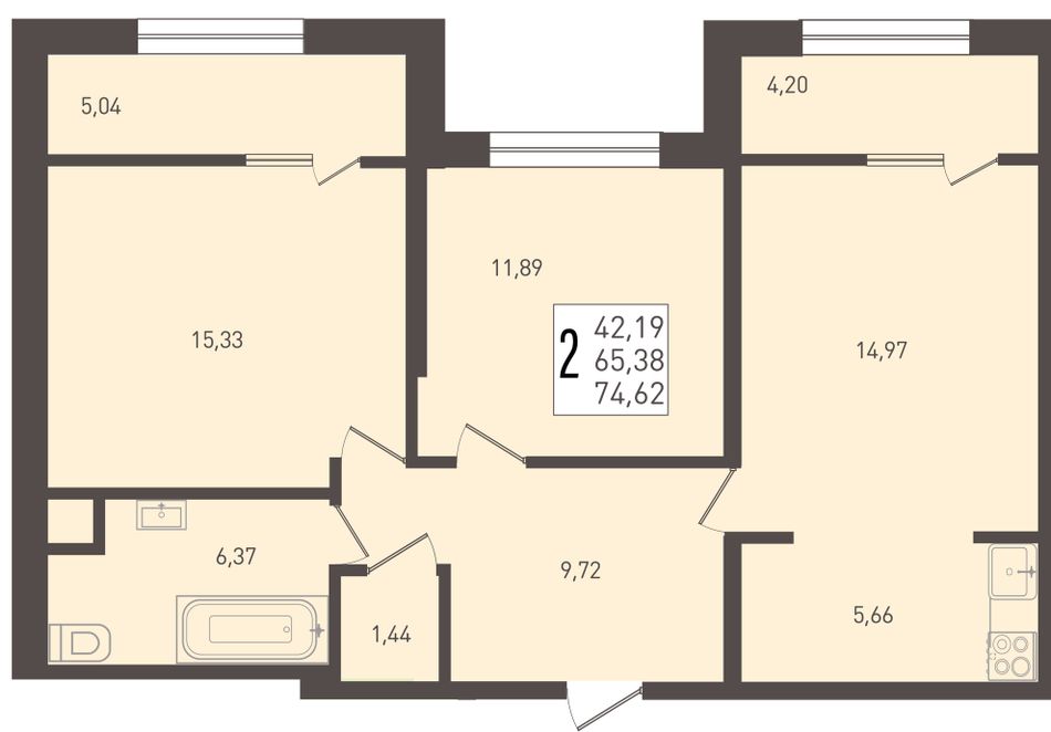 Общая площадь74,62 м²