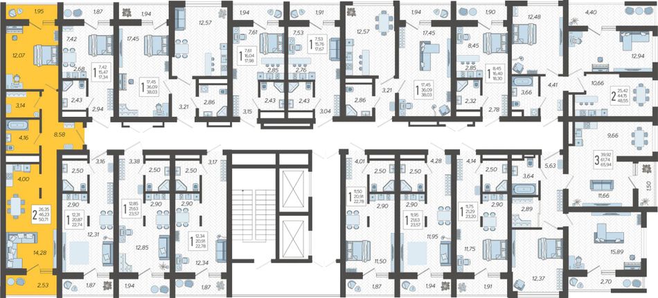 | 1-комн. | 40 - 58 м² | 7,2 - 8,2 млн ₽ |