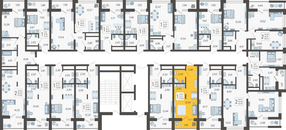 | 1-комн. | 40 - 58 м² | 7,2 - 8,2 млн ₽ |