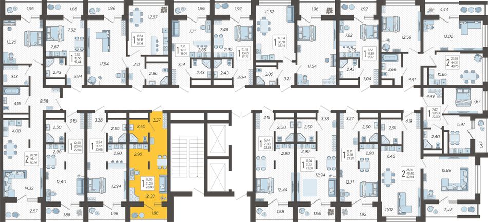 | 1-комн. | 40 - 58 м² | 7,2 - 8,2 млн ₽ |