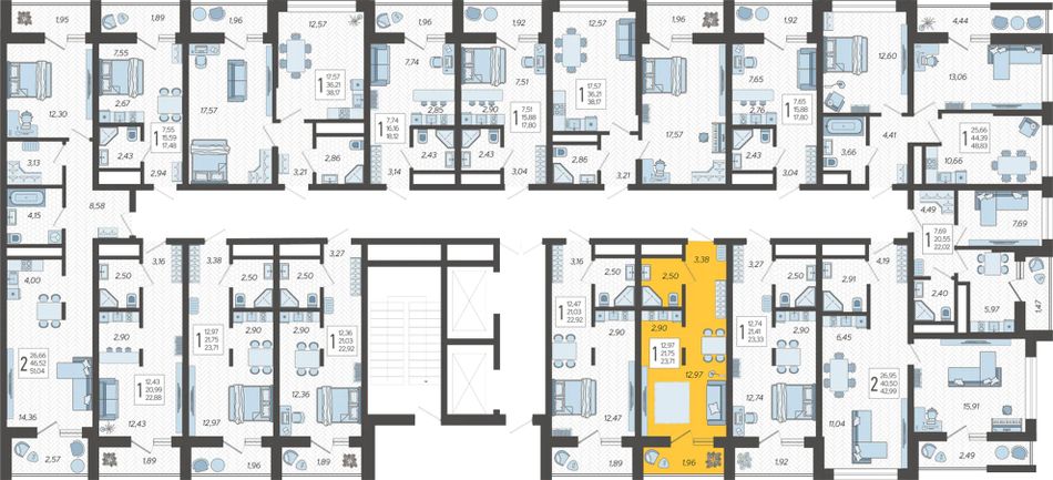 | 1-комн. | 40 - 58 м² | 7,2 - 8,1 млн ₽ |