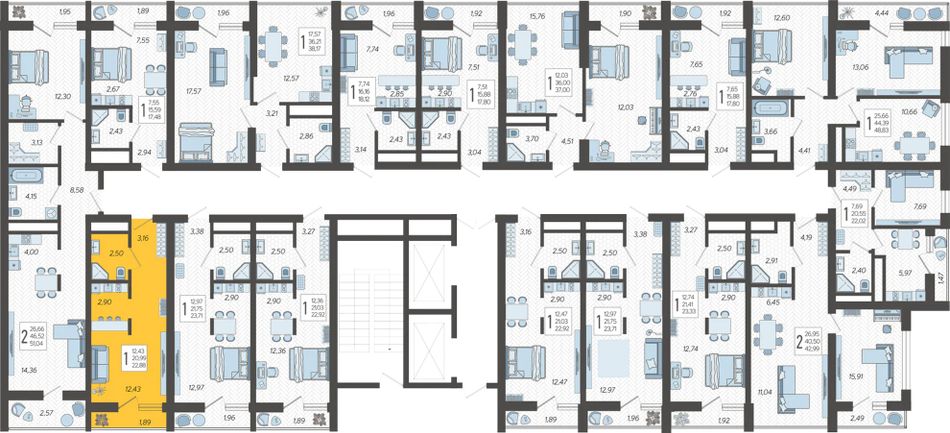 | 1-комн. | 40 - 58 м² | 7,2 - 8,2 млн ₽ |