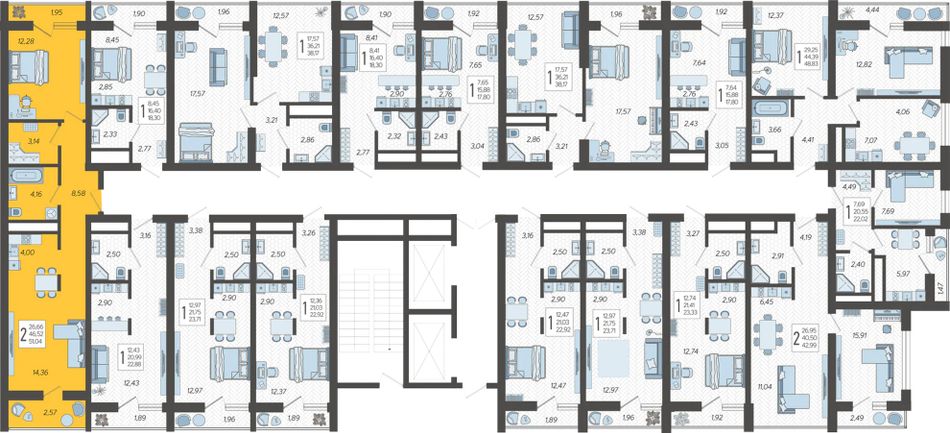 | 1-комн. | 40 - 58 м² | 7,2 - 7,9 млн ₽ |