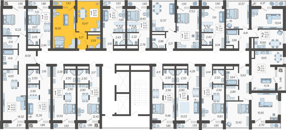 | 1-комн. | 40 - 58 м² | 7,2 - 8,2 млн ₽ |