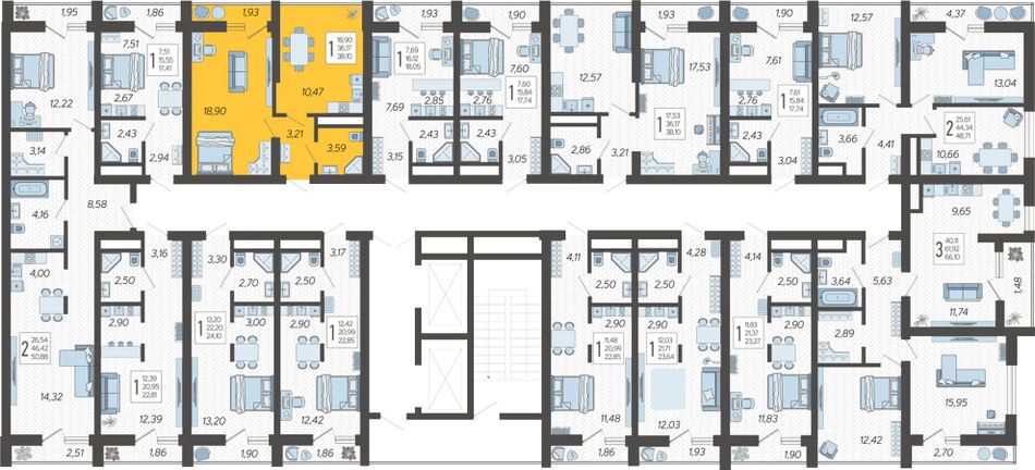 | 1-комн. | 40 - 58 м² | 7,2 - 8,2 млн ₽ |