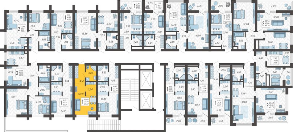 | 1-комн. | 40 - 58 м² | 7,2 - 8,2 млн ₽ |