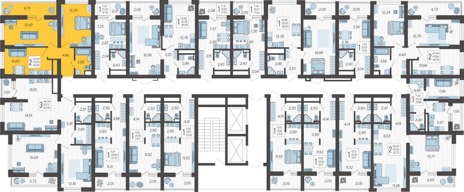 | 1-комн. | 37 - 47 м² | 6,9 - 7,9 млн ₽ |