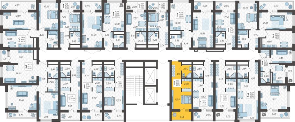 | 1-комн. | 40 - 58 м² | 7,2 - 8,2 млн ₽ |