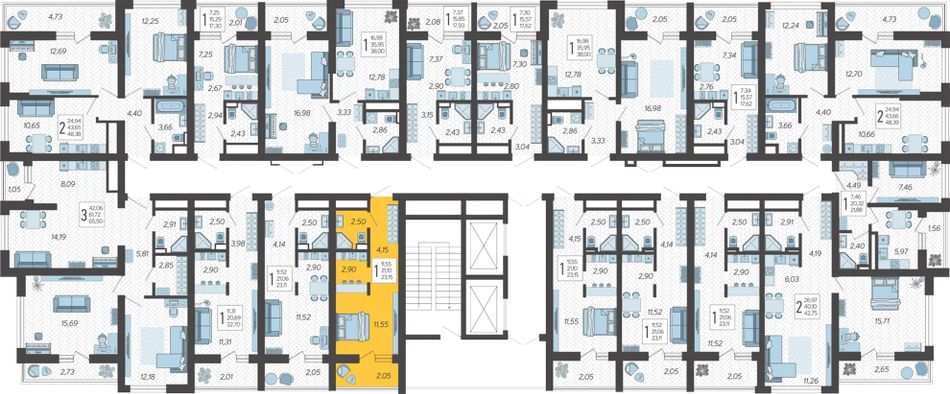 | 1-комн. | 40 - 58 м² | 7,2 - 8,2 млн ₽ |