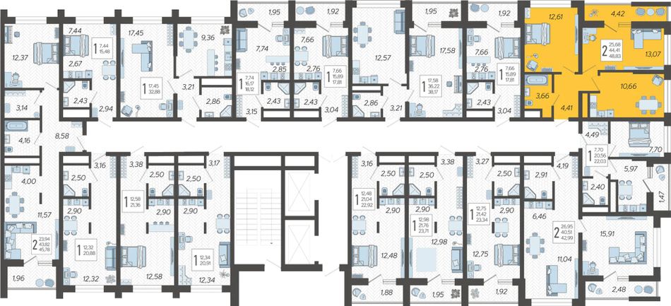 | 1-комн. | 40 - 58 м² | 7,2 - 7,9 млн ₽ |
