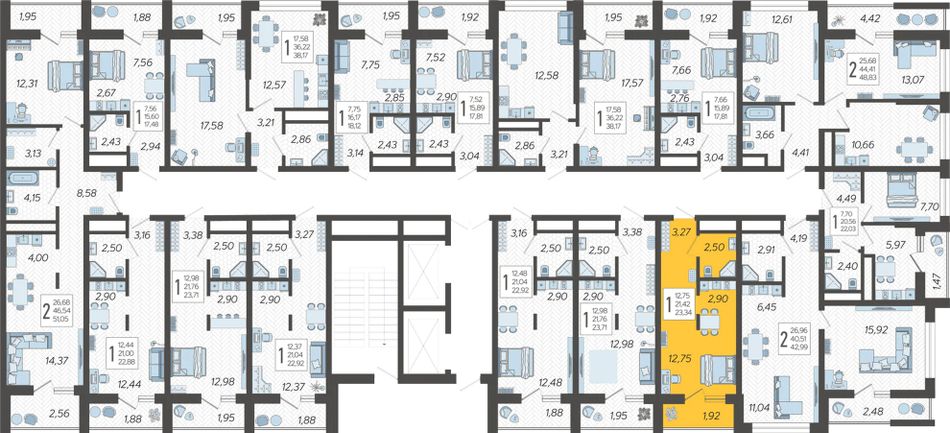 | 1-комн. | 40 - 58 м² | 7,2 - 7,9 млн ₽ |