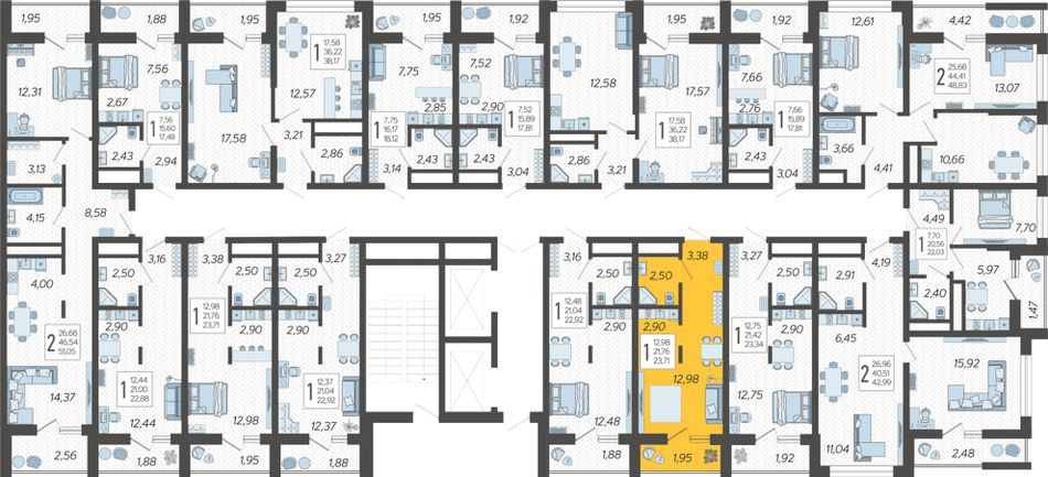 | 1-комн. | 40 - 58 м² | 7,2 - 7,9 млн ₽ |