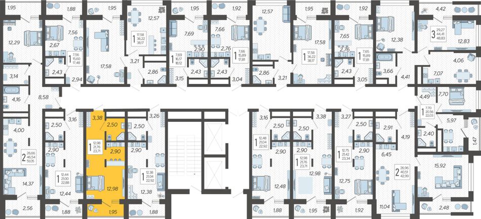 | 1-комн. | 40 - 58 м² | 7,2 - 8,2 млн ₽ |