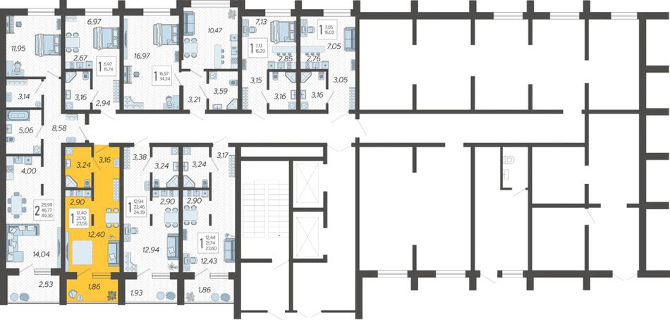 | 1-комн. | 40 - 58 м² | 7,2 - 7,9 млн ₽ |