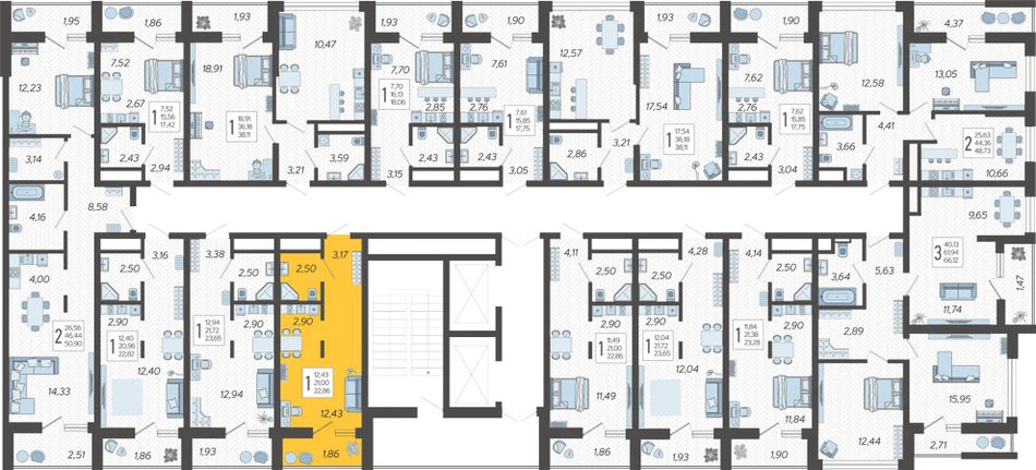 | 1-комн. | 40 - 58 м² | 7,2 - 7,9 млн ₽ |
