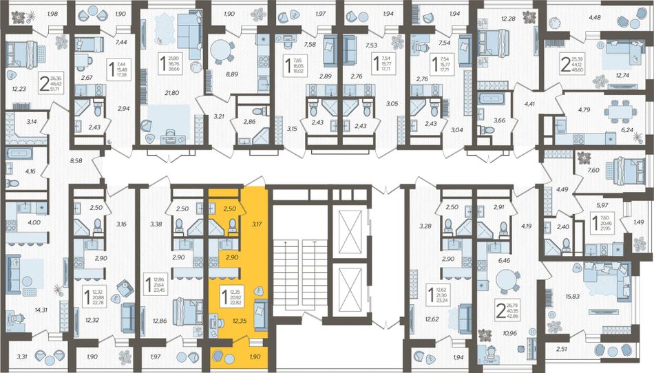 | 1-комн. | 40 - 58 м² | 7,2 - 7,9 млн ₽ |