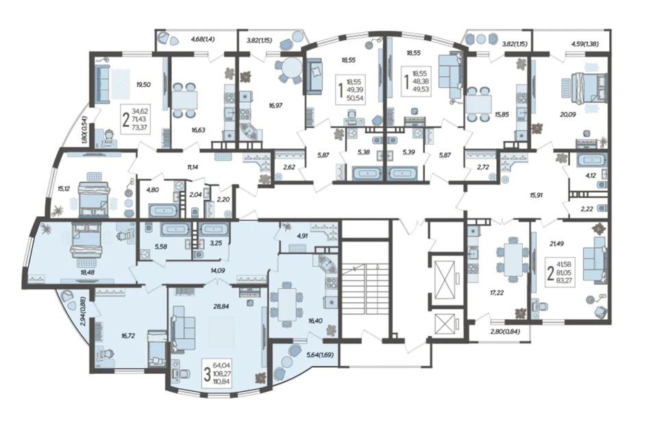 | 3-комн. | 92 - 111 м² | 12,8 - 16,6 млн ₽ |