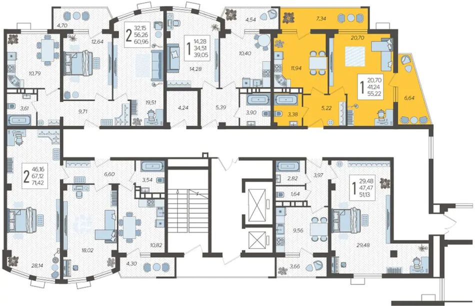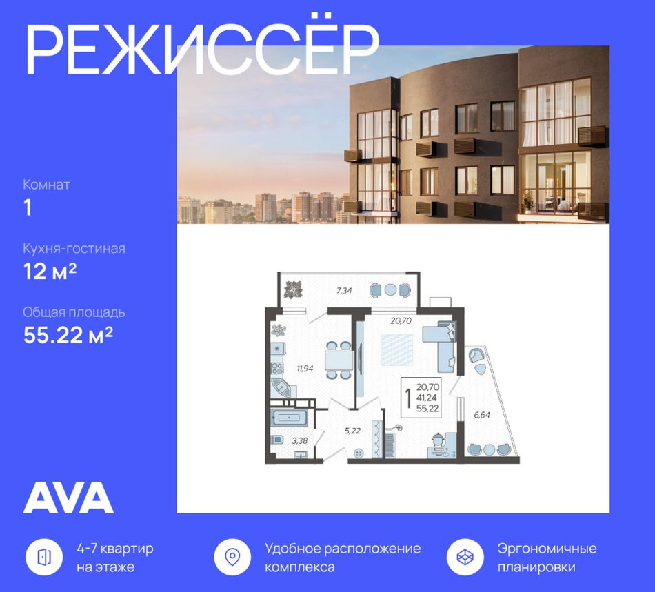 1-комнатная — 55,22 м² 4/14 эт. в Режиссёр