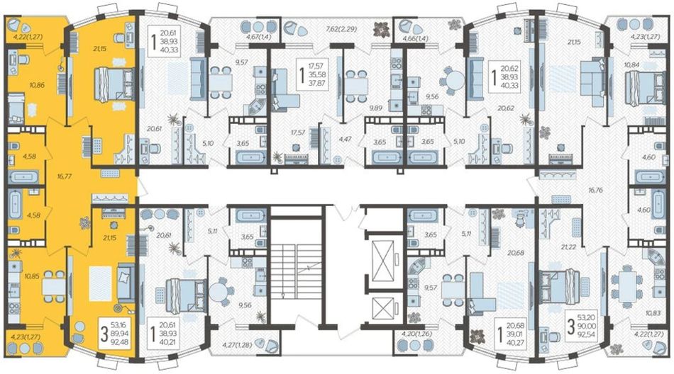 3-комнатная — 92,48 м² 16/21 эт. в Режиссёр