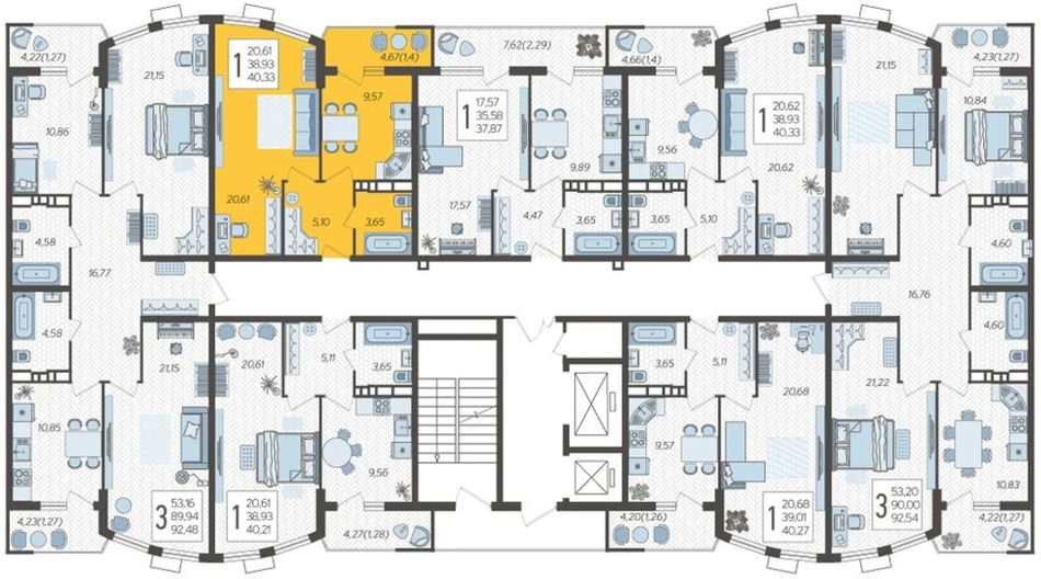 3. 1-комнатная, 40,33 м²