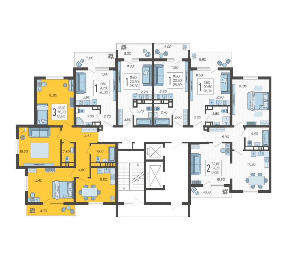 | 3-комн. | 78 - 79 м² | 8,8 - 9 млн ₽ |