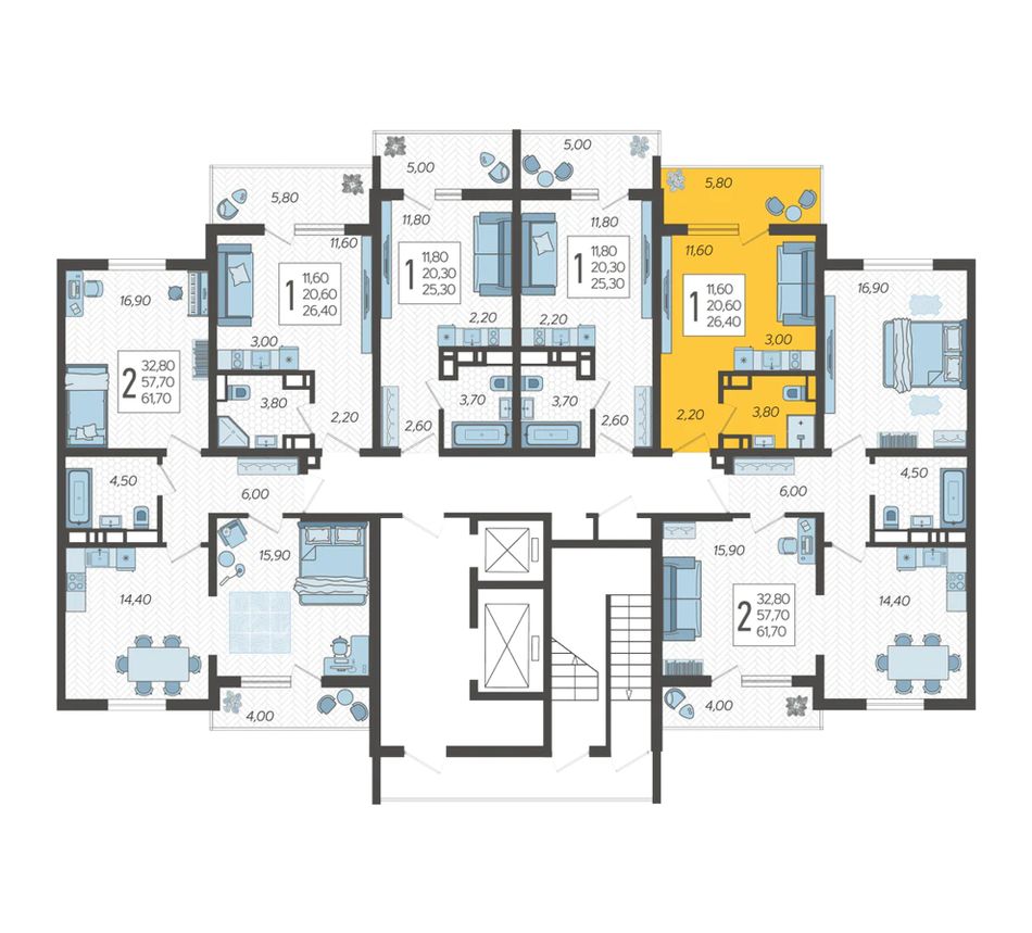 | 2-комн. | 60 - 68 м² | 8,4 - 10,8 млн ₽ |