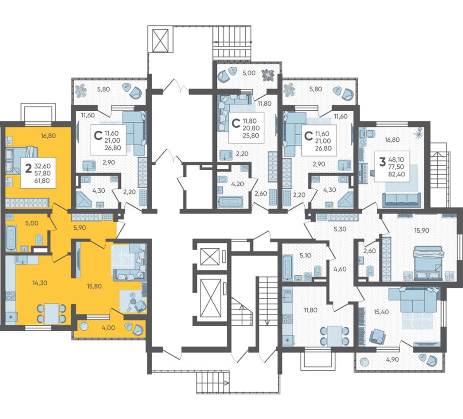 | 3-комн. | 80 - 82 м² | 22,1 - 24,7 млн ₽ |